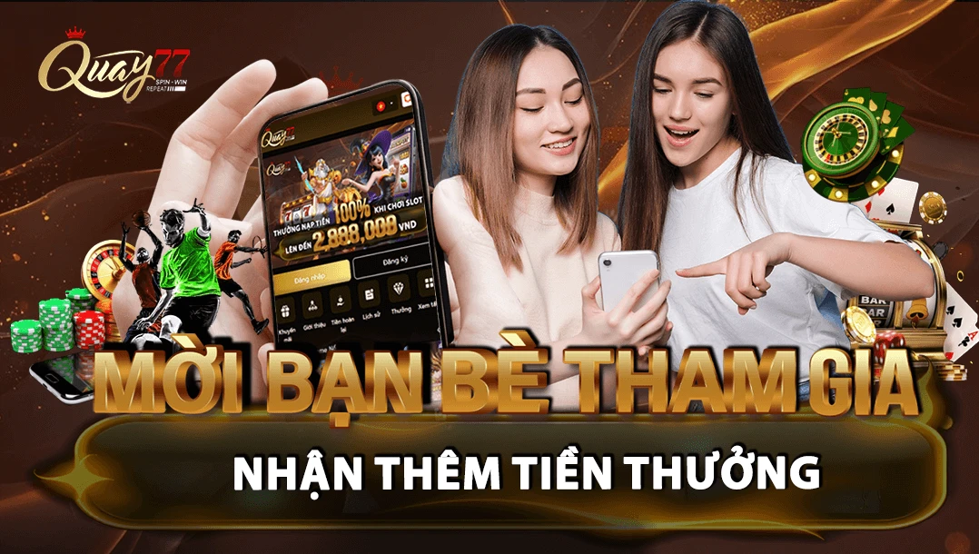 Hiện đang phát hành hàng loạt những khuyến mãi hấp dẫn cho người chơi, mới đây Quay777 com mang đến cho mọi người tiền thưởng ưu đãi lên đến 8888K khi mời bạn bè tham gia trò chơi.